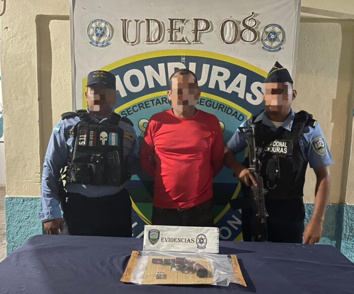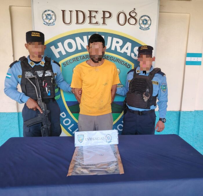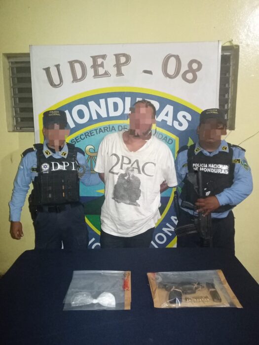 El arrestado un hombre de 60 años de edad, originario de Gualaco, Olancho, y residente en la aldea Los Ángeles de Trojes. Durante su detención se le decomisó un arma de fuego tipo escopeta color gris, diez cartuchos sin percutir y un envoltorio plástico con polvo blanco, presunta cocaína, los cuales fueron remitidos como evidencia.