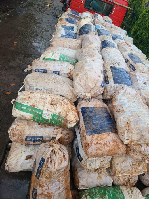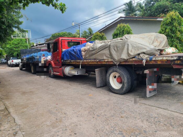 Como prueba constitutiva de delito se les decomisó un camión marca internacional conteniendo en su interior 203 Sacos de supuesto material de mineria (tierra brosa), y un camión marca Volvo color Rojo sin placa conteniendo 200 saco de material de mineria supuesta (tierra brosa)