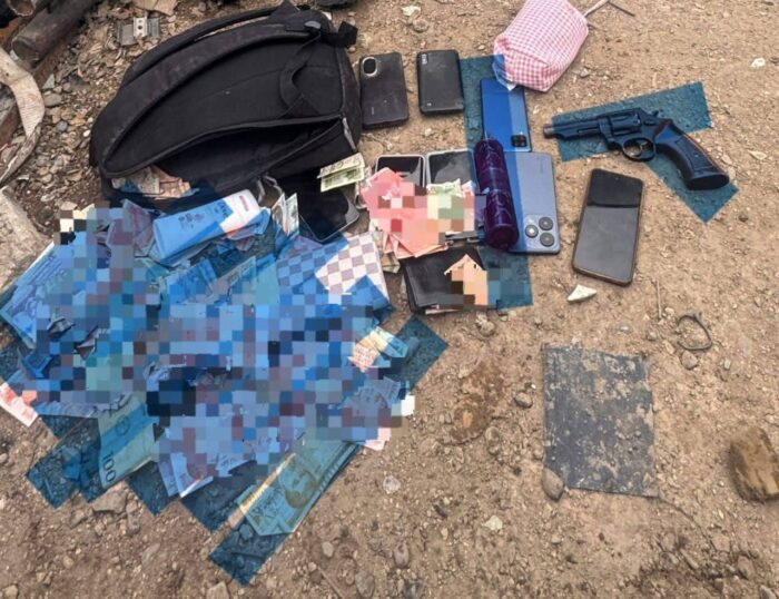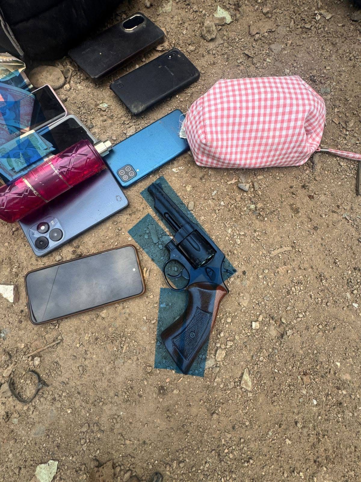 Se les decomisó un arma de fuego tipo revólver con varios cartuchos sin percutir, así como dinero en efectivo y teléfonos celulares presuntamente producto del asalto