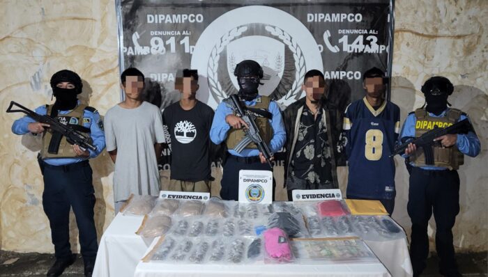 Inicialmente se requirió a alias “Cuto”, de 27 años, quien fue detenido en 2025, por tráfico de drogas; y a alias “El Chon”, de 18 años. También, se aprehendió a alias “El Choco”, de 17 años, originario de San Pedro Sula, Cortés, y a alias “Botia”, de 17 años de edad, considerados infractores de la ley.