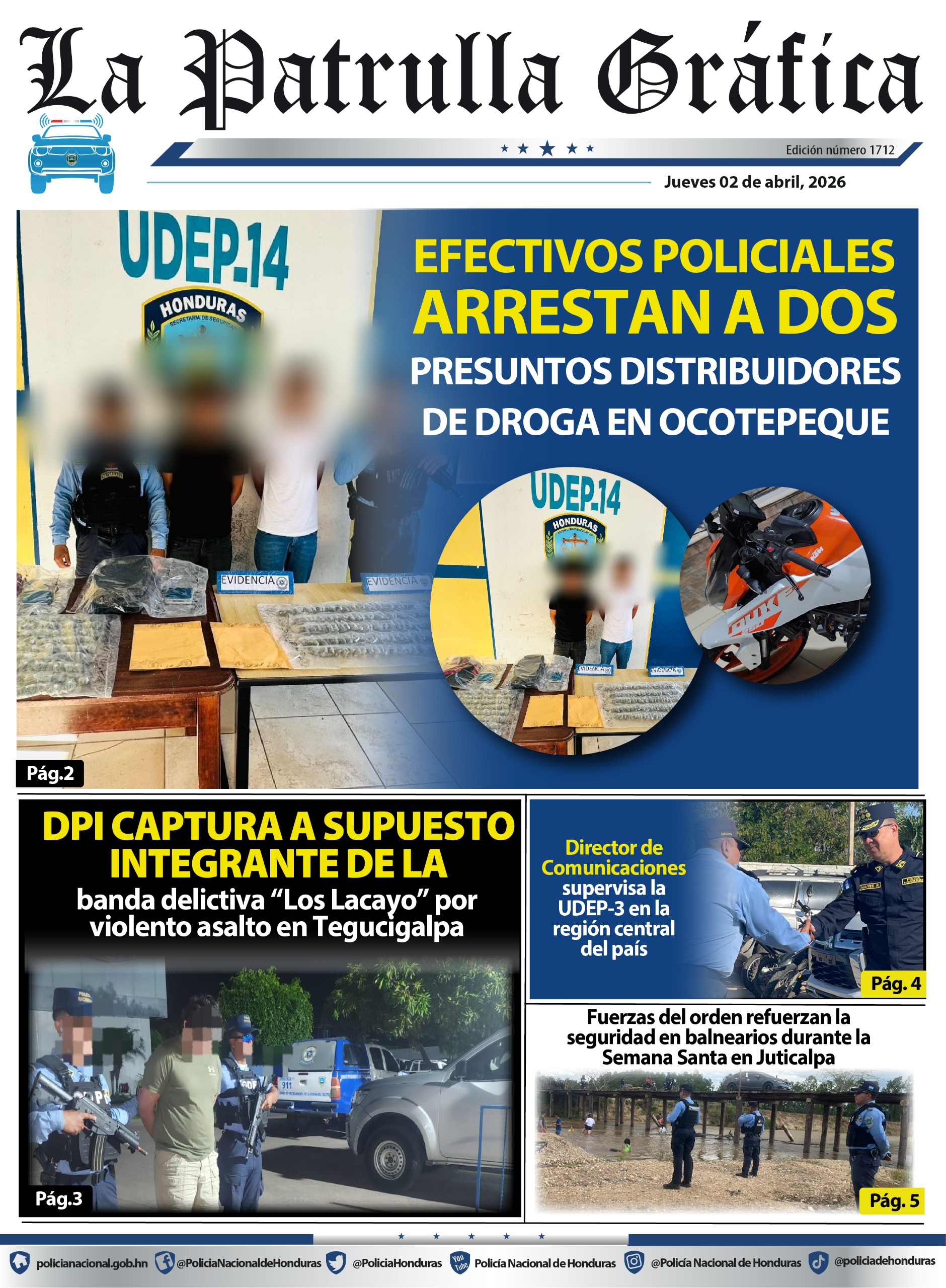 El Negrito, Yoro. Jueves 02 de abril de 2026. En el marco de las acciones operativas para contrarrestar el microtráfico de drogas en el país, la Dirección Policial de Investigaciones (DPI), a través de la Unidad Municipal de Investigación Criminal (UMIC-18), logró la detención de manera flagrante de un individuo supuesto miembro activo de la estructura criminal MS-13.