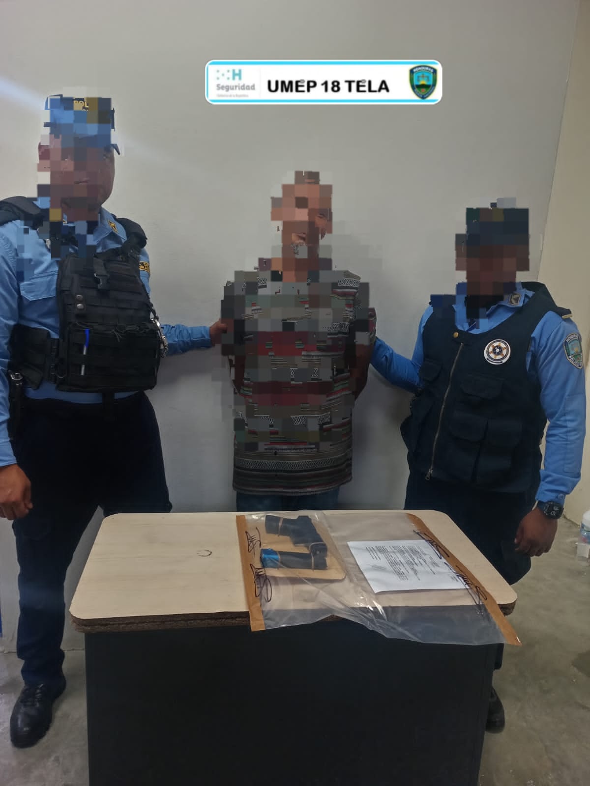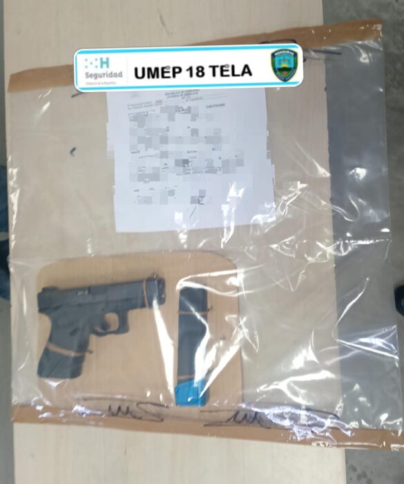 Tela, Atlántida. Funcionarios policiales de la Dirección Nacional de Prevención y Seguridad Comunitaria (DNPSC), en coordinación con la Dirección Policial de Investigaciones (DPI), asignados a la Unidad Metropolitana de Policía Número 18 (UMEP-18), en las últimas horas le dieron detención a una persona del sexo masculino en la aldea El Zapote, municipio de Tela, por suponerlo responsable del delito de porte ilegal de arma de fuego, en perjuicio de la seguridad pública del Estado de Honduras.