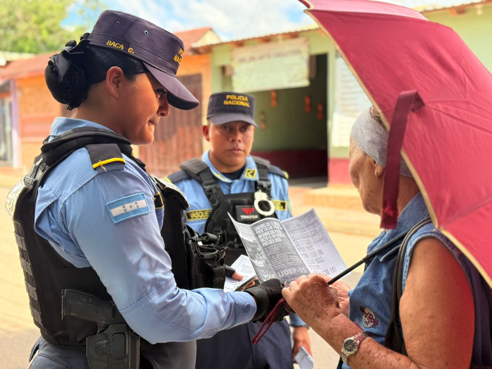 Juticalpa, Olancho. 08 de abril del 2026.- La Policía Nacional, a través de la Unidad Departamental de Prevención Nº.15 (UDEP-15), desarrolló una jornada de acercamiento comunitario mediante la entrega de folletos informativos en diferentes barrios y colonias del municipio de Juticalpa, Olancho.