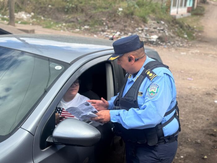 Choluteca. 08 de abril de 2026.- Con el propósito de fortalecer la prevención del delito de extorsión, la Policía Nacional, a través de la Dirección Policial Anti Maras y Pandillas Contra el Crimen Organizado (DIPAMPCO), desarrolló una jornada de sensibilización dirigida a operadores del transporte que brindan el servicio de taxi, a la altura del puente Tiburcio Carías Andino, ubicado en la ciudad de Choluteca.