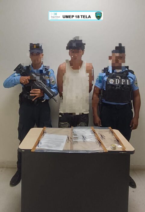 Arizona, Atlántida, 8 de abril de 2026.- Agentes de la Dirección Policial de Investigaciones (DPI), en coordinación con la Dirección Nacional de Prevención y Seguridad Comunitaria (DNPSC), asignados a la Unidad Metropolitana de Policía número 18 (UMEP-18) le dieron detención a una persona del sexo masculino en la aldea Hicaque del municipio de Arizona, por suponersele responsable del delito de tráfico de drogas en su modalidad de microtráfico, en perjuicio de la salud pública del Estado de Honduras.