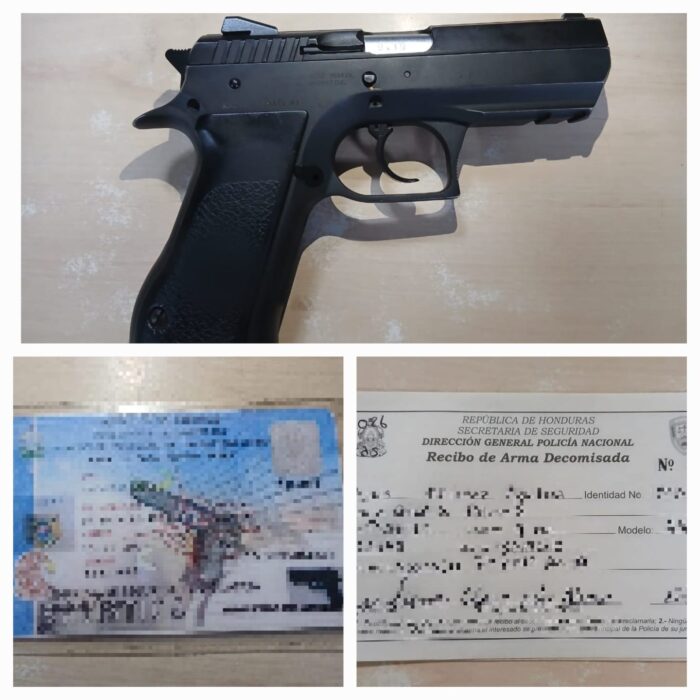 Y en otra acción policial operativa, en el barrio Palermo de la periferia sur oeste de la ciudad de El Progreso, policías preventivos requirieron a un ciudadano de 29 años, originario y residente en el barrio Palermo de El Progreso, Yoro, éste quien portaba un arma de fuego de uso permitido, tipo pistola, la cual le fue decomisada, extendiéndole el correspondiente comprobante de decomiso del arma.