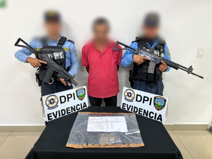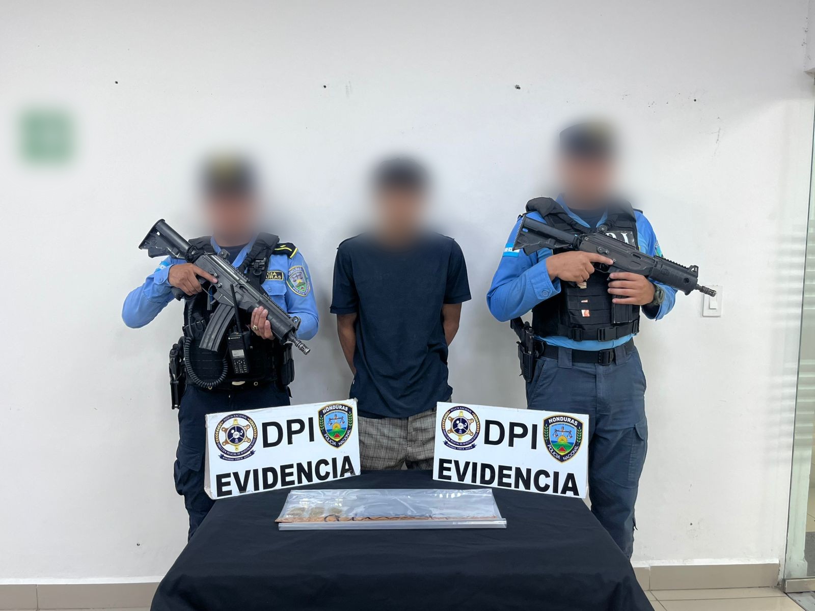 El detenido de 33 años de edad, es originario y residente en el mismo sector donde se efectuó su formal detención, siendo requerido en flagrancia, por suponerlo responsable de los delitos de tenencia ilegal de arma de fuego y tráfico ilícito de drogas, en perjuicio del orden público, del Estado de Honduras y la salud pública.