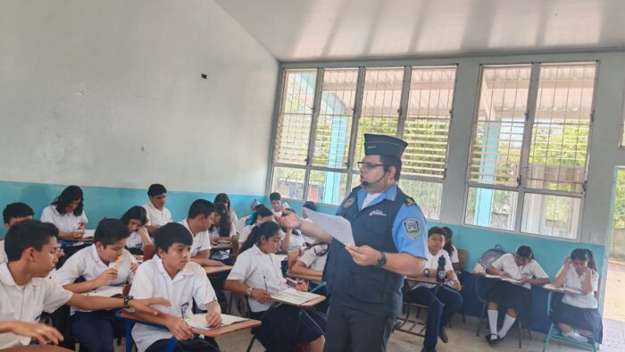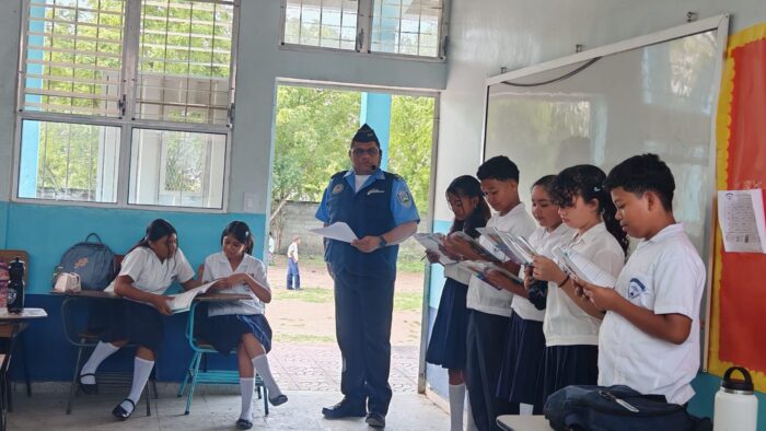 La Lima, Cortés. 8 de abril del año 2026.- La Policía Nacional a través de la Unidad Metropolitana de Prevención N° 9(UMEP-9), brindan este día, capacitaciones a niños y niñas en la comunidad del plan del municipio de San Manuel, Cortés.