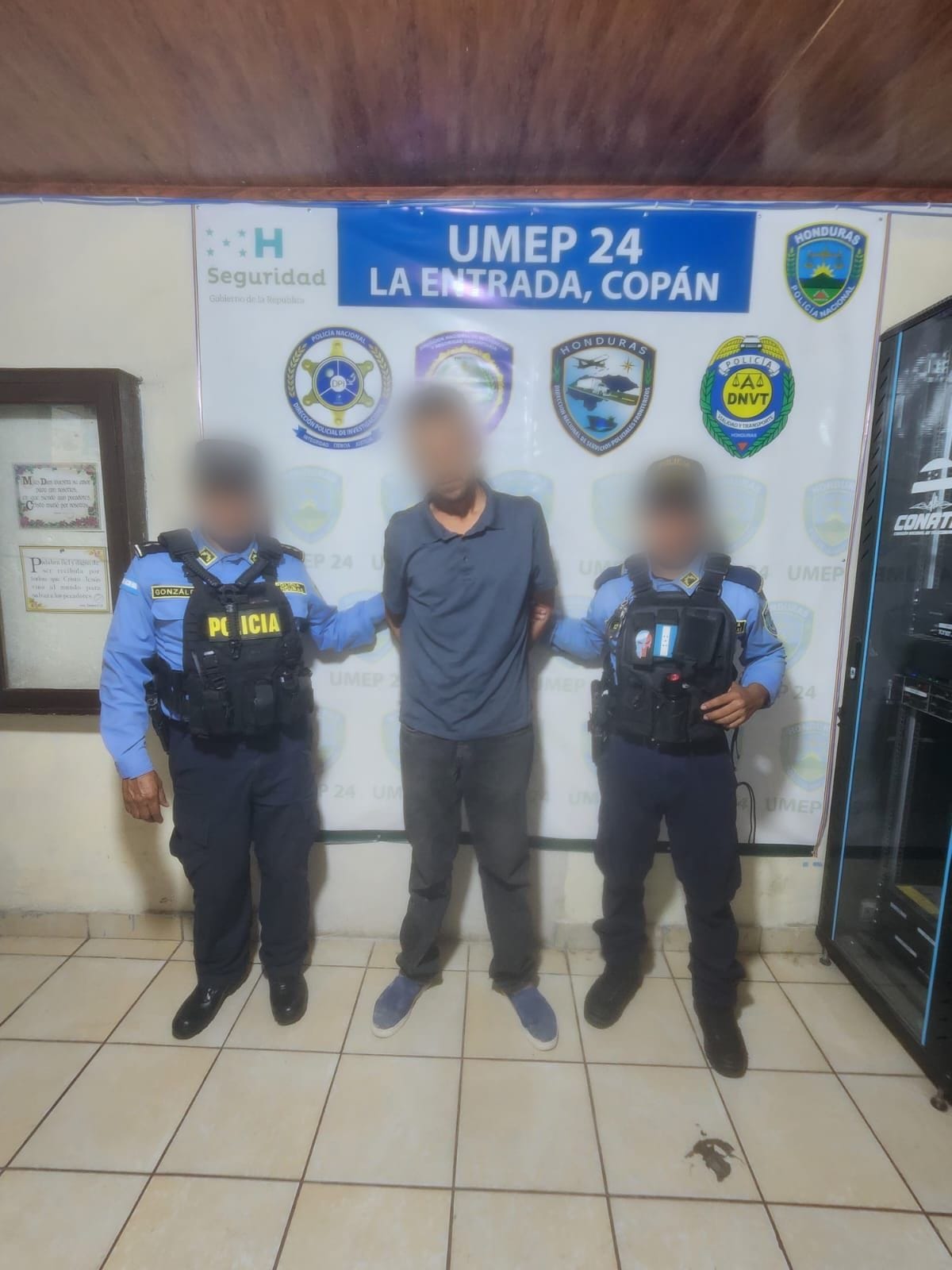 La efectiva operación fue ejecutada por un equipo de investigadores de la Unidad Metropolitana de Investigación Criminal (UMIC-24), en coordinación con agentes de la Dirección Nacional de Prevención y Seguridad Comunitaria (DNPSC), en el municipio de Nueva Arcadia, departamento de Copán.
