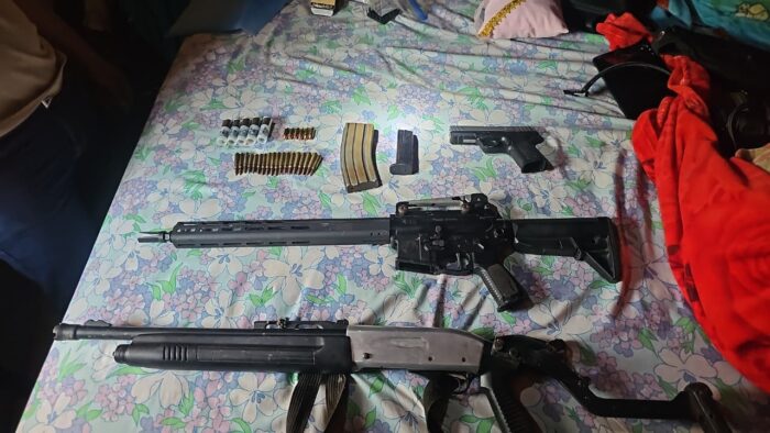 En el lugar se logró el decomiso de un fusil marca SIG SAUER, una pistola marca Smith & Wesson, una escopeta, dos rifles calibre .22, además de dos cargadores (uno de fusil y uno de pistola).
