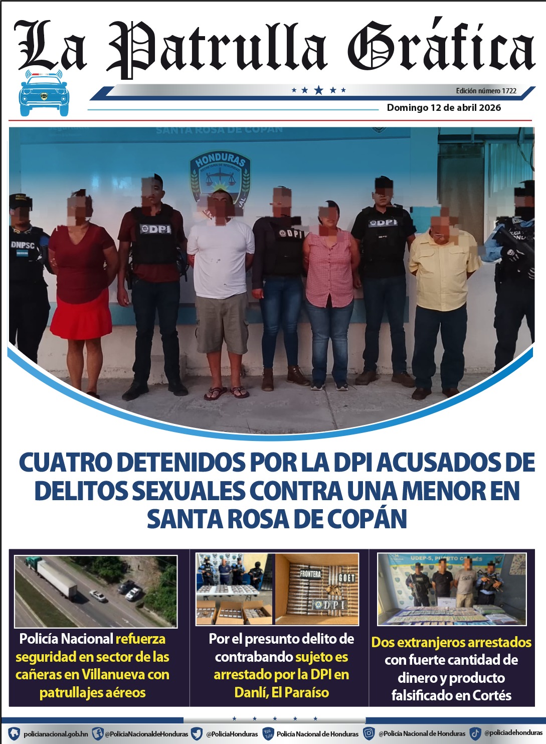 Redes Sociales Abr, Dom, 2026 LA PATRULLA GRAFICA CUATRO DETENIDOS POR LA DPI ACUSADOS DE DELITOS SEXUALES CONTRA UNA MENOR EN SANTA ROSA DE COPÁN DOMINGO 12 DE ABRIL, 2026 LA PATRULLA GRÁFICA REVISIÓN copiaDescarga