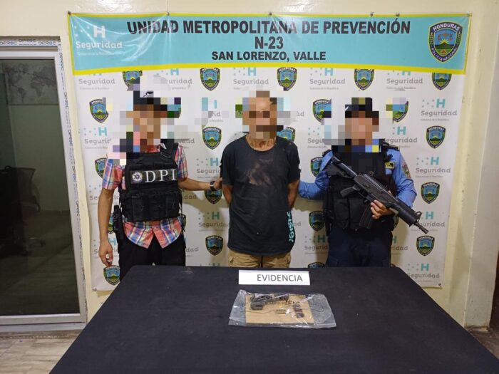 San Lorenzo, Valle. 10 de octubre de 2025.– Mediante allanamiento de morada, agentes de la Dirección Policial de Investigaciones (DPI), y de la Dirección Nacional de Prevención y Seguridad Comunitaria (DNPSC), asignados a la Unidad Metropolitana de Prevención #23 (UMEP-23), detuvieron a un hombre en el municipio de Pespire, por suponerlo responsable del delito de tenencia ilegal de arma de fuego.