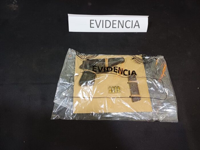Al detenido de 61 años, originario de Pespire, se le decomisó un arma de fuego tipo pistola calibre 380 mm de metal con cuatro proyectiles sin percutir, por la cual no presentó la documentación que acredite su propiedad.
