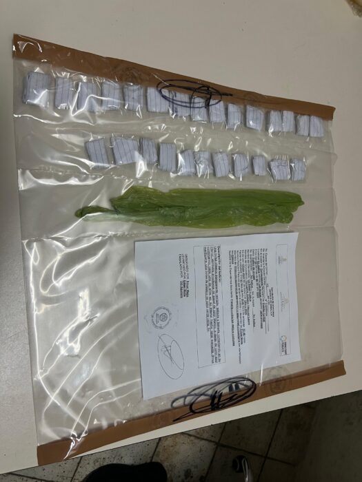 El segundo capturado es alias “Yanki”, de 24 años, originario de El Paraíso y residente en la misma colonia. Al momento de su aprehensión se le decomisaron 26 envoltorios plásticos con hierba seca, supuesta marihuana. También es señalado de desempeñarse como “placero” en la estructura criminal.