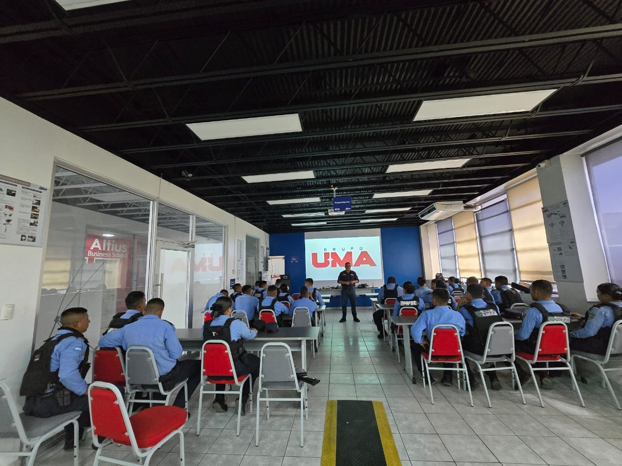La jornada formativa se realizó en las instalaciones de Grupo UMA, donde 28 agentes de policía participaron activamente en el taller impartido por Héctor Sandoval, especialista en desarrollo humano.