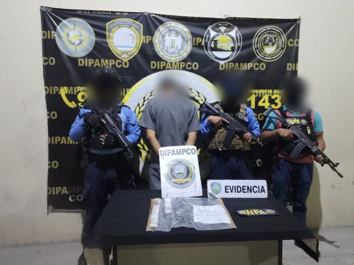 El detenido, de 20 años, originario y residente de la colonia Los Pinos, mismo lugar donde fue capturado en una saturación policial por parte de los funcionarios de la Unidad Metropolitana de Prevención #4 (UMEP-4), la Dirección Policial Anti Maras y Pandillas Contra el Crimen Organizado (DIPAMPCO) y La Dirección Nacional Policial Antidrogas (DNPA).