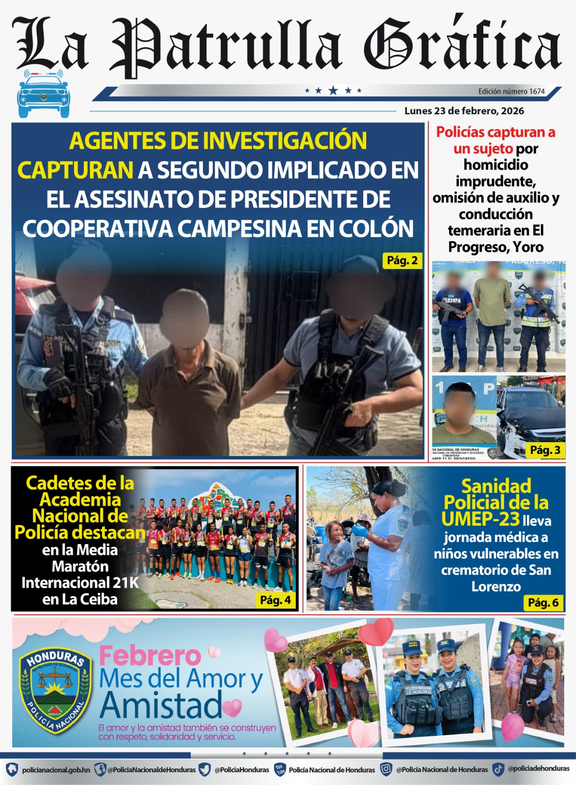 Redes Sociales Feb, Lun, 2026 LA PATRULLA GRAFICA Agentes de investigación capturan a segundo implicado en el asesinato de presidente de cooperativa campesina en Colón LUNES 23 DE FEBRERO 2026 – LA PATRULLA GRAFICA –Descarga