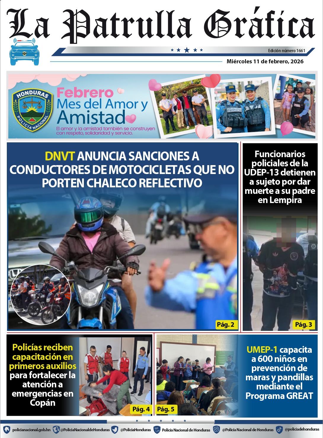 Redes Sociales Feb, Mié, 2026 LA PATRULLA GRAFICA DNVT anuncia sanciones a conductores de motocicletas que no porten chaleco reflectivo MIÉRCOLES 11 DE FEBRERO 2026 – LA PATRULLA GRAFICADescarga