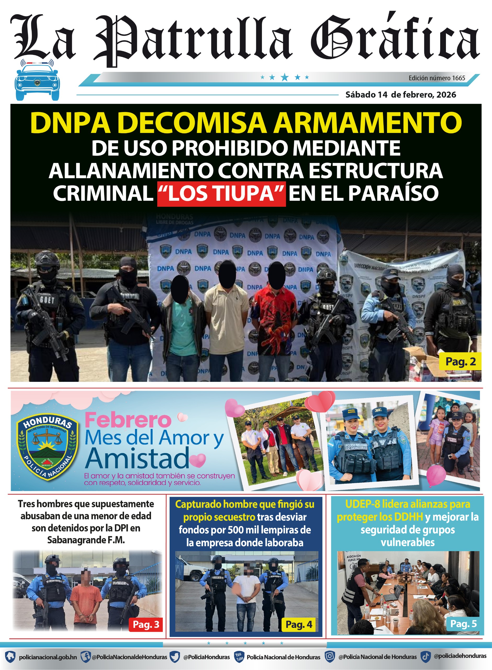 Redes Sociales Feb, Sáb, 2026 LA PATRULLA GRAFICA DNPA decomisa armamento de uso prohibido mediante allanamiento contra estructura criminal “LOS TIUPA” en El Paraíso SÁBADO 14 DE FEBRERO DE 2026 – LA PATRULLA GRAFICA (1)Descarga