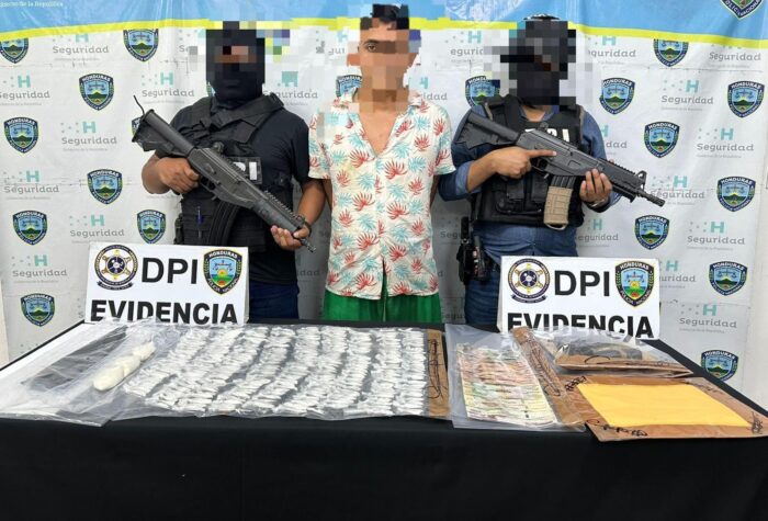 El Progreso,Yoro.7 de noviembre de 2025.- En una operación de impacto efectuada en las últimas horas por agentes de la Dirección Policial de Investigaciones(DPI), con el fin de combatir la venta y distribución de sustancias alucinógenas en la zona atlantica del país; producto de ellos,se logró arrestar de manera flagrante un presunto gatillero del Grupo Delictivo Organizado(GDO) “Los Kleivona” cuando se disponía a realizar la distribución de la supuesta droga.