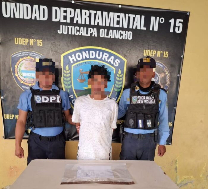 Asimismo, mediante patrullaje de prevención en el barrio El Centro del municipio de Patuca, los agentes detuvieron a un hombre de 44 años, a quien se le encontró en posesión de polvo blanco, supuesta cocaína.