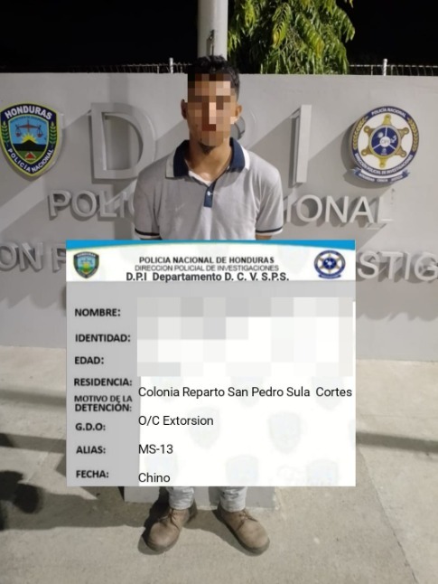 San Pedro Sula, Cortés. 09 de agosto de 2025.– En una acción de seguimiento y vigilancia en el marco del Plan Solución Contra el Crimen Fase III, agentes del Departamento de Delitos Contra la Vida de la Dirección Policial de Investigaciones (DPI) capturaron a un miembro activo del Grupo Delictivo Organizado (G.D.O.) MS-13 con el rango de “gatillero”, acusado del delito de extorsión.