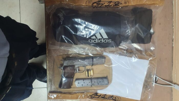 Durante el registro personal, los uniformados le decomisaron una mochila color negro que contenía en su interior un arma de fuego tipo pistola con su respectivo cargador.