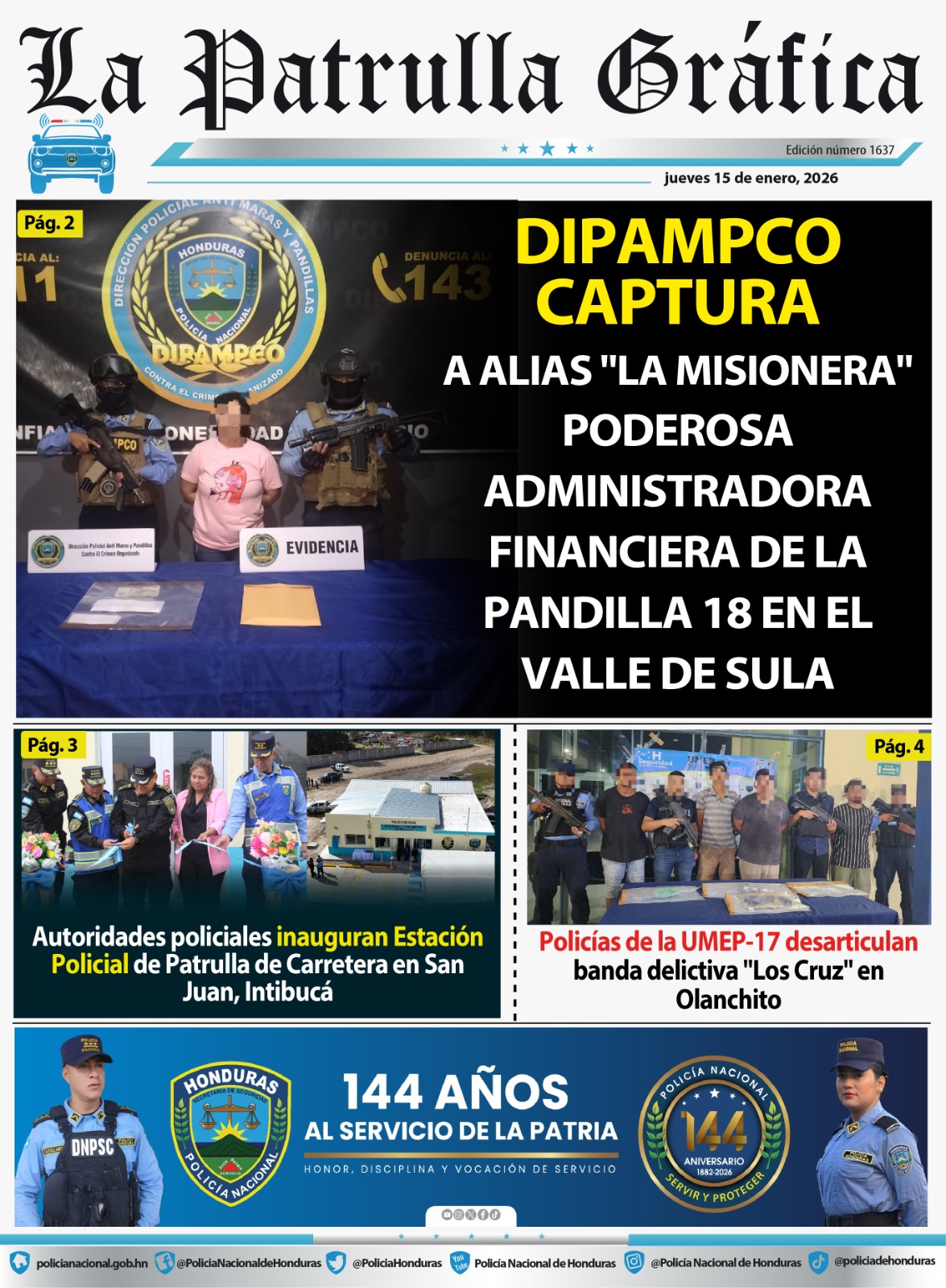 Redes Sociales Ene, Jue, 2026 LA PATRULLA GRAFICA DIPAMPCO CAPTURA A ALIAS “LA MISIONERA” PODEROSA ADMINISTRADORA FINANCIERA DE LA PANDILLA 18 EN EL VALLE DE SULA JUEVES 15 DE ENERO 2026 – LA PATRULLA GRAFICA (2)Descarga Comentarios 0