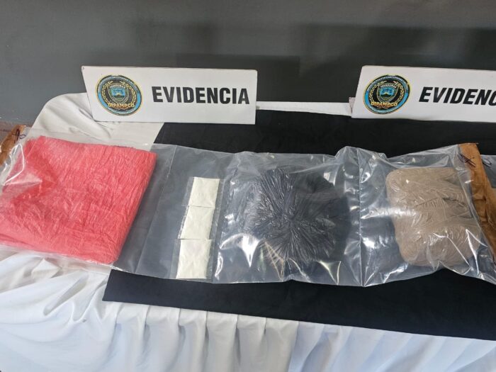 Durante la operación, los agentes decomisaron un arma de fuego tipo pistola con su respectivo cargador, 10 cartuchos calibre 45 mm, un paquete y una bolsa plástica con supuesta marihuana, tres envoltorios con supuesto cocaína, 19 cartuchos calibre 5.56 mm, nueve cartuchos calibre 7.62 mm y un teléfono celular.