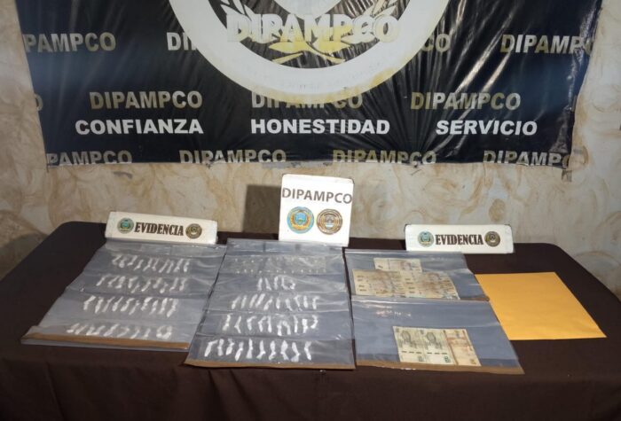 A estos les decomisaron 35 puntas plásticas con polvo blanco supuesta cocaína, 64 envoltorios con piedra supuesto crack, dinero en efectivo y un teléfono celular