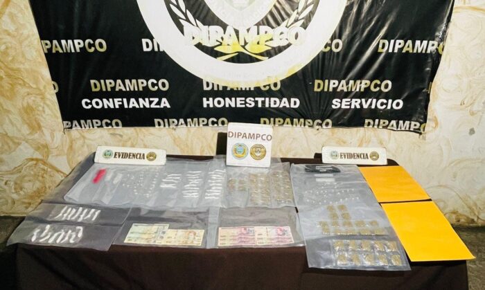 Estos fueron encontrados en posesión de 40 puntas con polvo blanco supuesta cocaína, 48 envoltorios con hierba seca presunta marihuana, 48 envoltorios con piedra supuesto crack, dos teléfonos celulares.