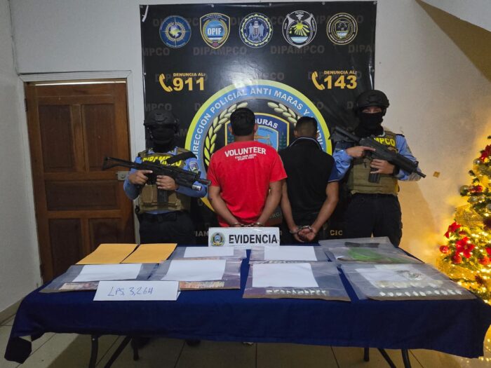 San Agustín, Copán, 29 de noviembre del 2025. – Agentes de la Dirección Policial Anti Maras y Pandillas Contra el Crimen Organizado (DIPAMPCO), y la Dirección Nacional de Prevención y Seguridad Comunitaria (DNPSC), mediante allanamiento de morada, en el barrio Las Tejeras del municipio de San Agustín, Copán, se le dio formal detención a dos personas vinculadas a tráfico de drogas.