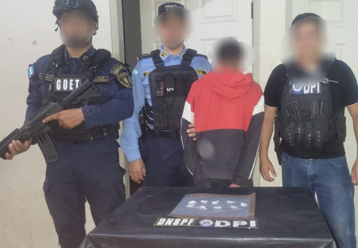 Pocos minutos más tarde, en el barrio El Tigre de Santa Rita, Copán, se aprehendió a un menor de 17 años, conocido con el alias “Ony”, quien trabajaba como soldador y se encargaba de la distribución de la droga junto con el adulto detenido.