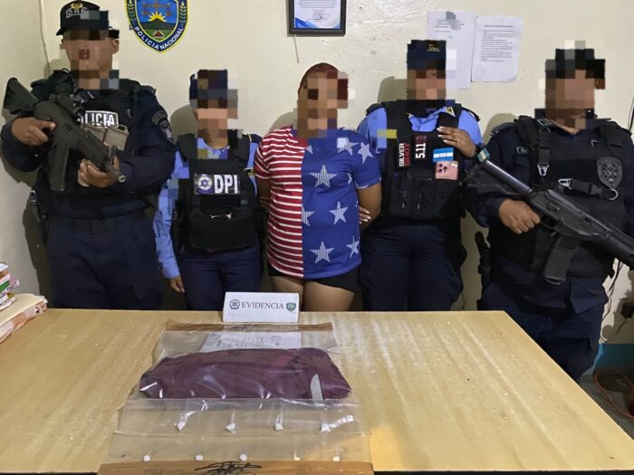La primera detención se efectuó durante un patrullaje preventivo en la aldea Punuare, municipio de Juticalpa. En el lugar, los agentes requirieron a una mujer de 28 años, a quien se le encontró en posesión de polvo blanco, supuesta cocaína.