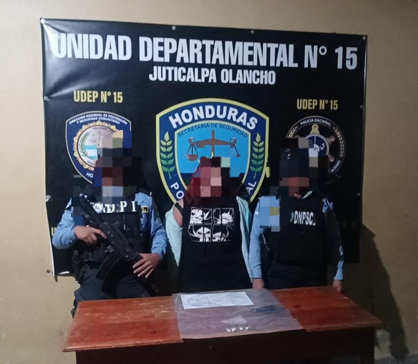La primera detención se efectuó durante un patrullaje preventivo en la aldea Punuare, municipio de Juticalpa. En el lugar, los agentes requirieron a una mujer de 28 años, a quien se le encontró en posesión de polvo blanco, supuesta cocaína.