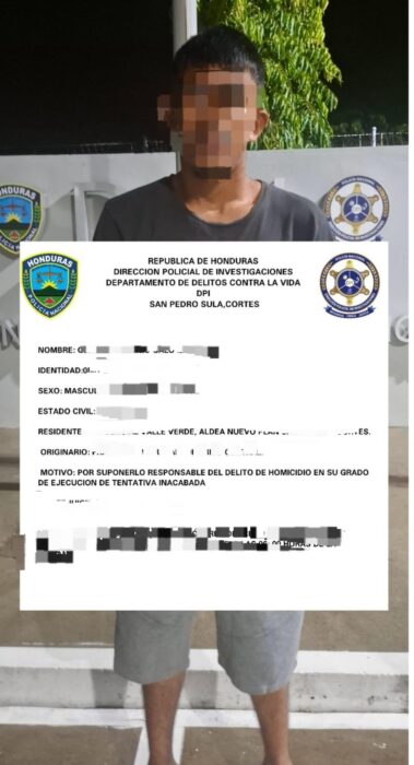 La acción policial se desarrolló tras una rápida respuesta en la residencial villa verde, aldea nuevo plan, municipio de san manuel, cortés, lugar donde se registró una agresión armada en contra de otro ciudadano, quien logró sobrevivir al ataque.
