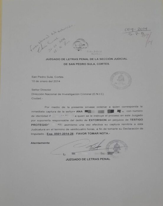 Se informó además, que la orden fue emitida el 01 de enero del 2014 por el Juzgado de Letras Penal de la Sección Judicial de San Pedro Sula, Cortés.