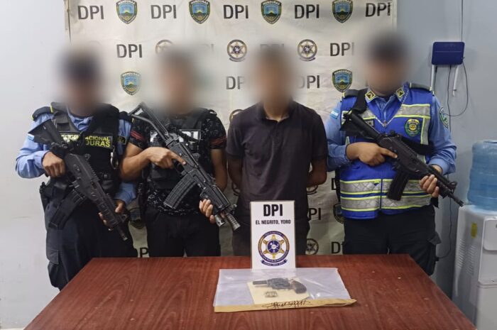 El segundo capturado un hombre de 25 años, originario y residente de la aldea Paya Morazán, Yoro lugar donde fue capturado en poder de un arma de fuego tipo revolver, cinco cartuchos sin percutir y un cargador metálico.
