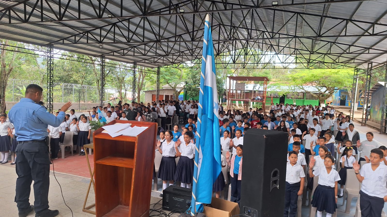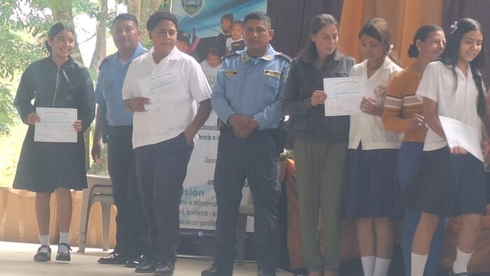 Comayagua Miércoles 12 de noviembre del 2025- Funcionarios policiales de la Unidad Departamental de Policía #03 (UDEP-03), llevaron a cabo una exitosa clausura del programa GREAT, en el Centro Educativo Básico Gregorio Donaire ubicado en la aldea Rancho Grande del municipio de Esquías Comayagua.