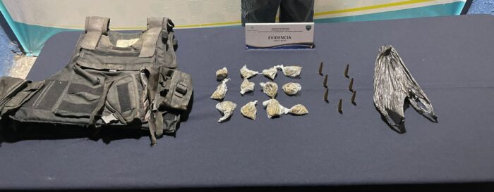 Tegucigalpa. 5 de diciembre de 2025. A raíz de ejecutar diferentes acciones operativas con el fin de contrarrestar a miembros de estructuras criminales en la capital, agentes de la Dirección Policial de Investigaciónes(DPI), lograron la aprehensión de manera flagrante de alias “Bless” supuesto miembro activo de la Pandilla 18 de la Clica Colombia Little Sayco (CLSS), en poder de supuesta droga, un chaleco antibalas y munición de uso prohibido.