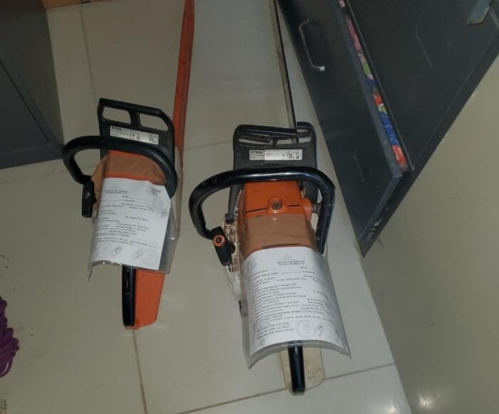 A estos seles decomiso dos motosierras y un vehículo tipo camión con madera recién cortada, los agentes policiales le dieron a conocer sus derechos como detenido y que es sospechoso de haber cometido el delito de explotación ilegal de los recursos naturales en perjuicio del medio ambiente,