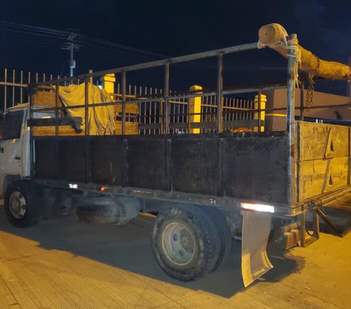 - Estos sospechosos fueron detenidos cuando conducía un vehículo tipo camión cargado con piezas de madera y dos motosierras
