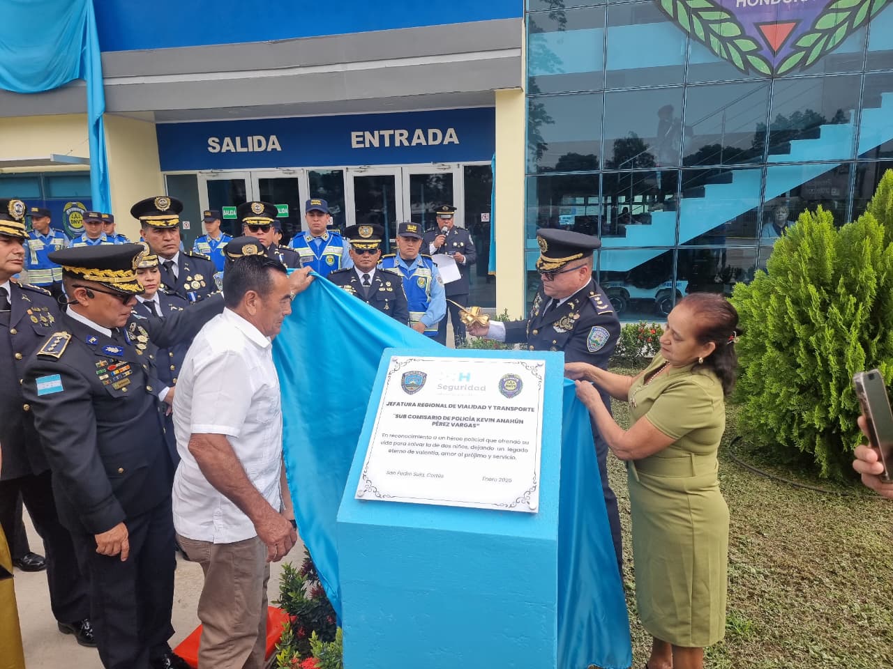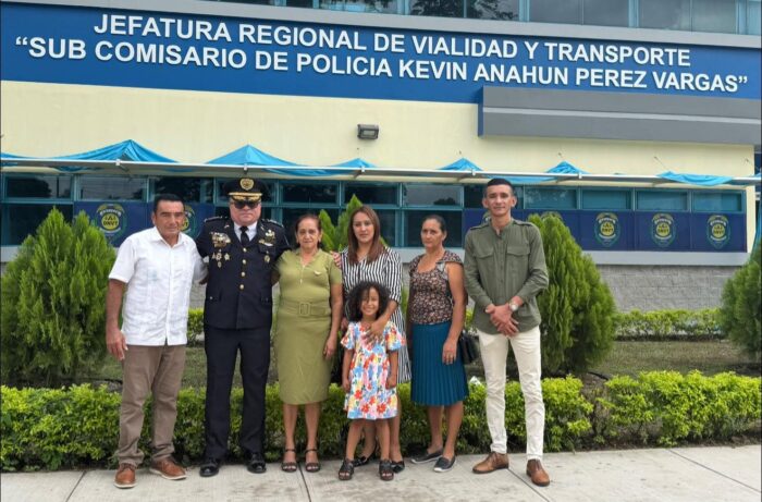 San Pedro Sula, Cortés. 15 de enero de 2026. En conmemoración del 144 aniversario de la Policía Nacional de Honduras, la institución realizó un emotivo homenaje al Sub Comisario de Policía Kevin Anahún Pérez Vargas, a quien se le ha otorgado su nombre a la Jefatura Regional de Vialidad y Transporte en San Pedro Sula, como reconocimiento a su valentía y dedicación al servicio de la ciudadanía.