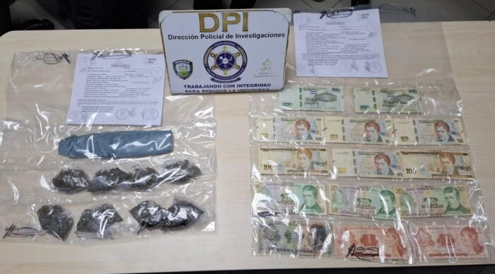 Al momento de su captura se logro decomisar dos bolsas plasticas conteniendo emboltorios de marihuana y dinero producto de la venta ilicita de droga.