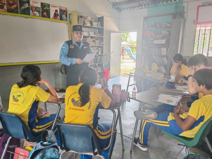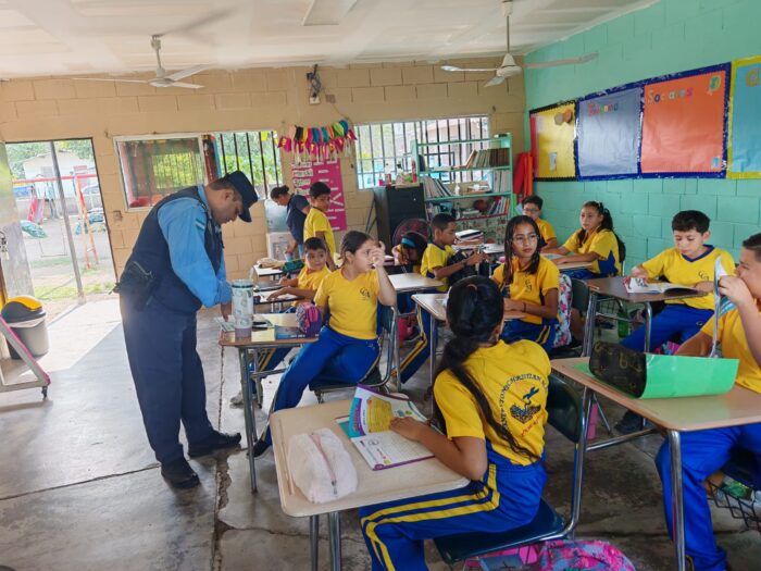 La Lima, Cortés. 3 de diciembre, 2025. La Policía Nacional, a través de la Unidad Metropolitana de Prevención N.°9 (UMEP-9), brindaron capacitaciones a niños y niñas en la comunidad de Corolito del municipio de San Manuel, Cortés.