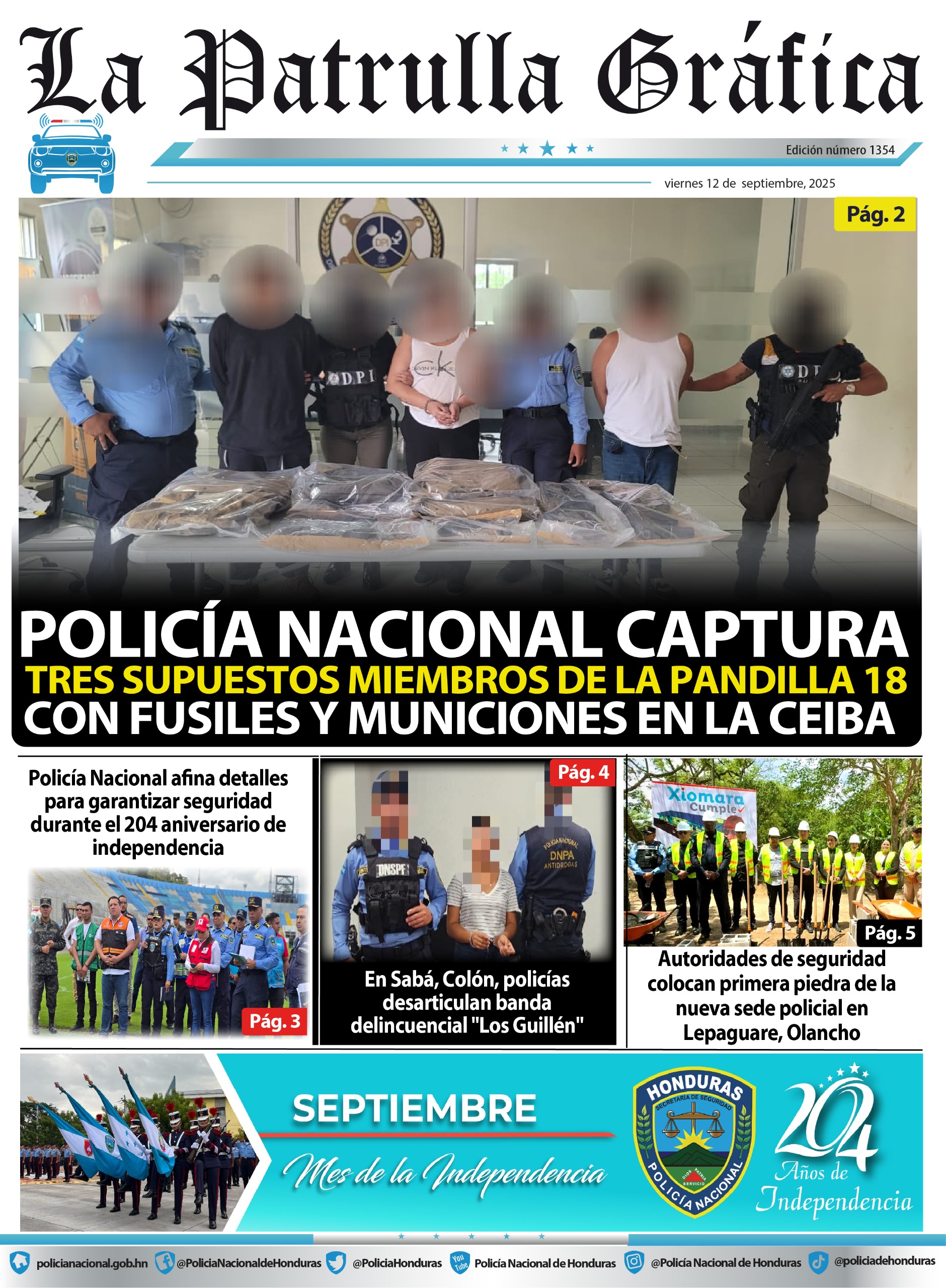 Redes Sociales Sep, Vie, 2025 LA PATRULLA GRAFICA POLICÍA NACIONAL CAPTURA TRES SUPUESTOS MIEMBROS DE LA PANDILLA 18 CON FUSILES Y MUNICIONES EN LA CEIBA VIERNES 12 DE SEPTIEMBRE- LA PATRULLA GRAFICA (1)Descarga Comentarios 0