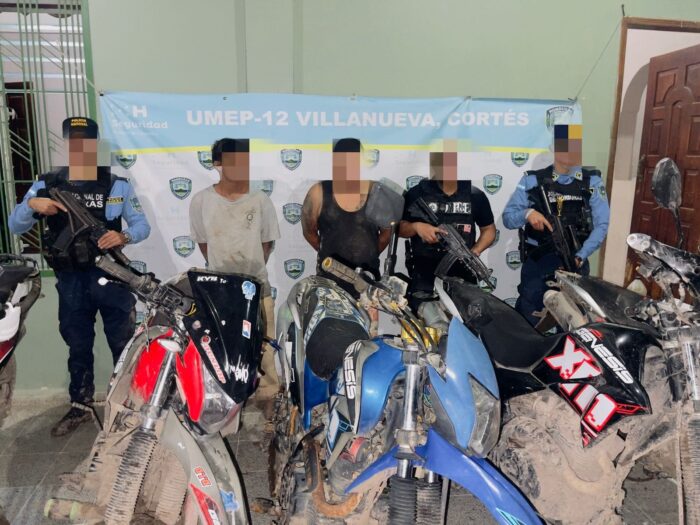Villanueva, Cortés. 30 de enero de 2026. La Policía Nacional desarticuló en las últimas horas, una banda dedicada al robo y la receptación de motocicletas, durante un operativo de seguimiento y vigilancia en el municipio de Potrerillos, Cortés