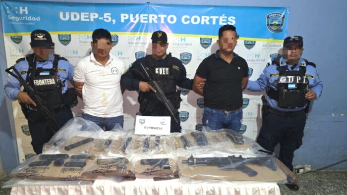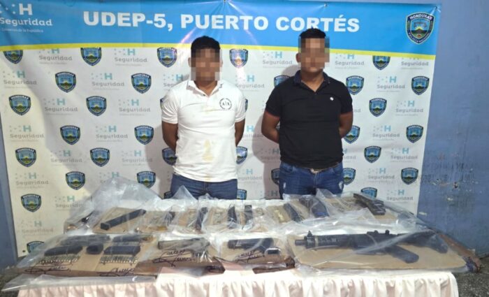Policía Nacional detiene a dos guatemaltecos con arsenal de armas y municiones en punto fronterizo de Corinto, Omoa