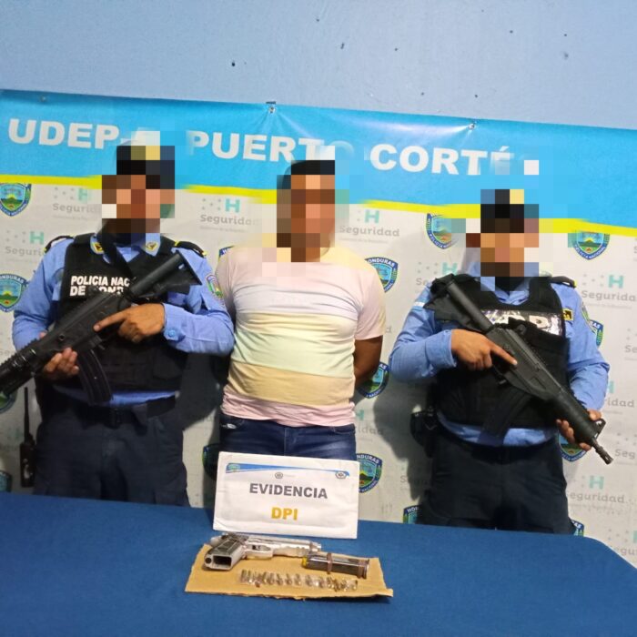 Policía Nacional detiene ciudadano por porte ilegal de arma de fuego en Puerto Cortés