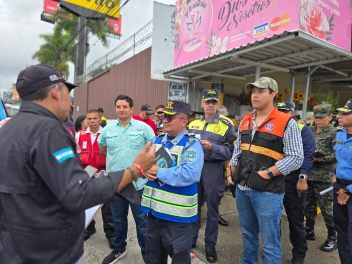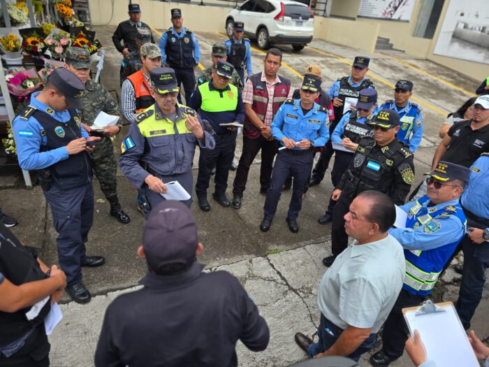 Ambos oficiales estuvieron acompañados por mandos de la Policía Militar del Orden Público, COPECO, Cruz Roja Hondureña y representantes de la Alcaldía Municipal del Distrito Central, revisando detalladamente los mapas de cierres, puntos de control y estrategias de seguridad junto al personal asignado.